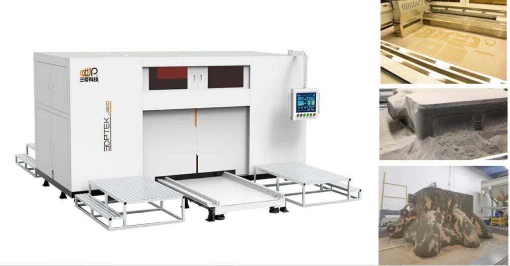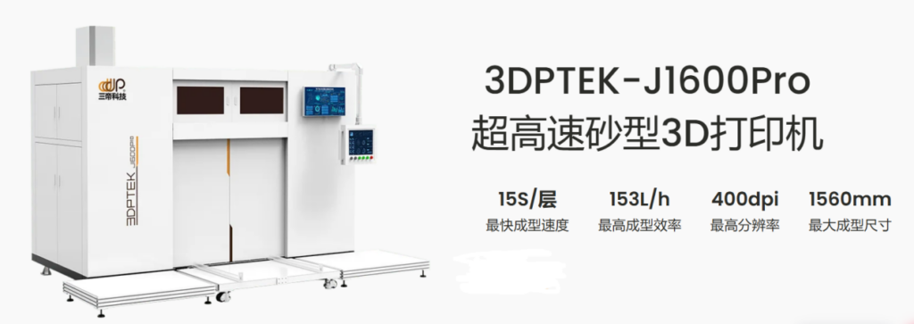 無砂箱 3D 打印機不斷實現(xiàn)技術(shù)革新,如三帝科技的 3DPTEK-J4000 采用無砂箱柔性區(qū)域成型技術(shù),可按需定制擴展打印平臺,最大能成型 4 米的砂型,滿足 10 米 + 級的生產(chǎn)需求,突破了傳統(tǒng)鑄造設(shè)備的尺寸限制,為大型復(fù)雜鑄件的制造提供了可能.